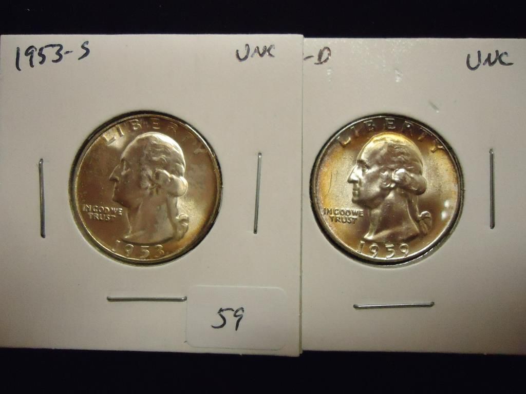 1953-S & 59-D WASHINGTON SILVER QUARTERS UNC