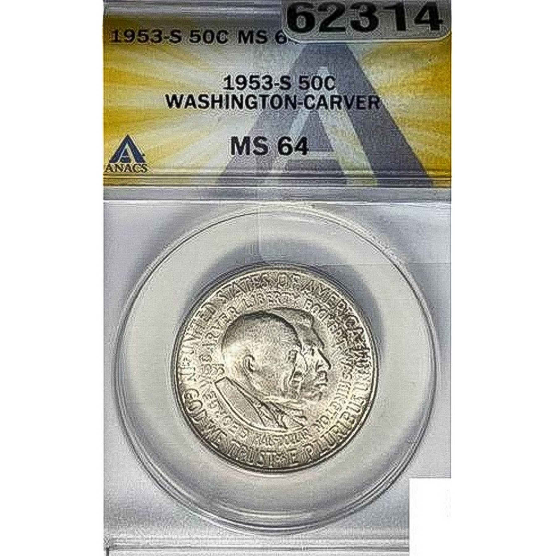 1953-S Booker T Half Dollar ANACS MS64
