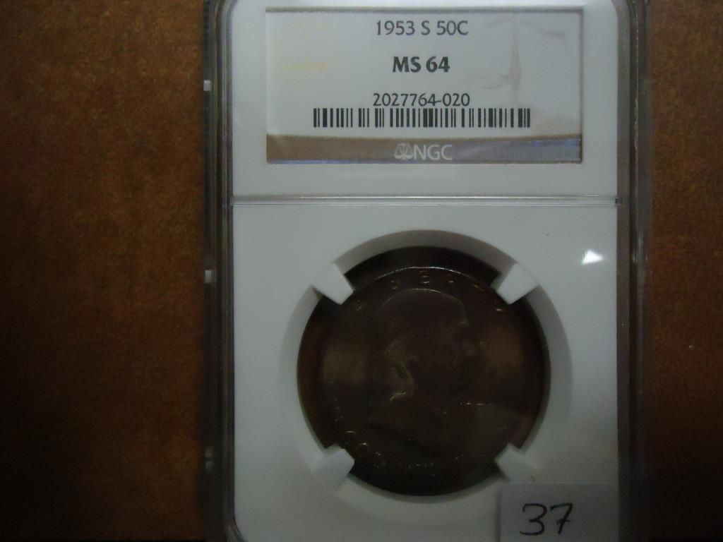 1953-S FRANKLIN HALF DOLLAR NGC MS64 TONED