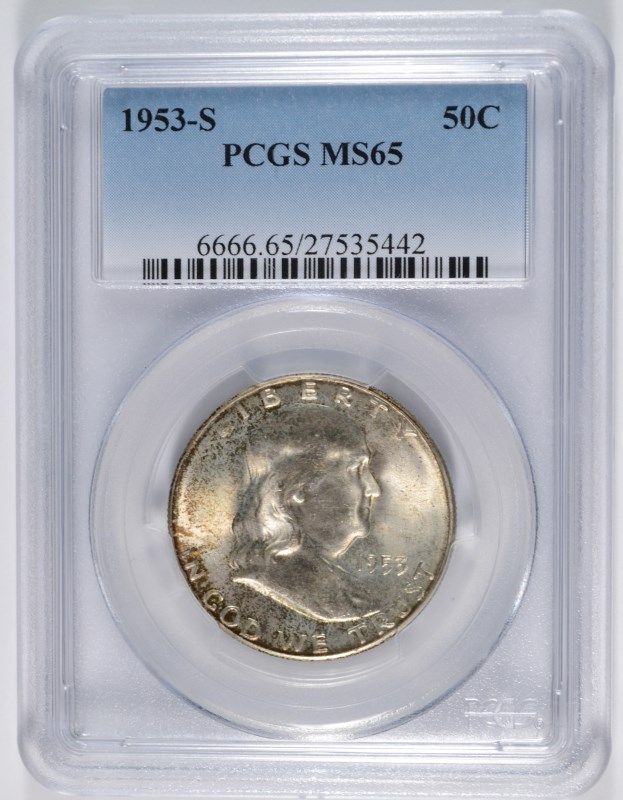 1953-S FRANKLIN HALF DOLLAR, PCGS MS-65 GEM!