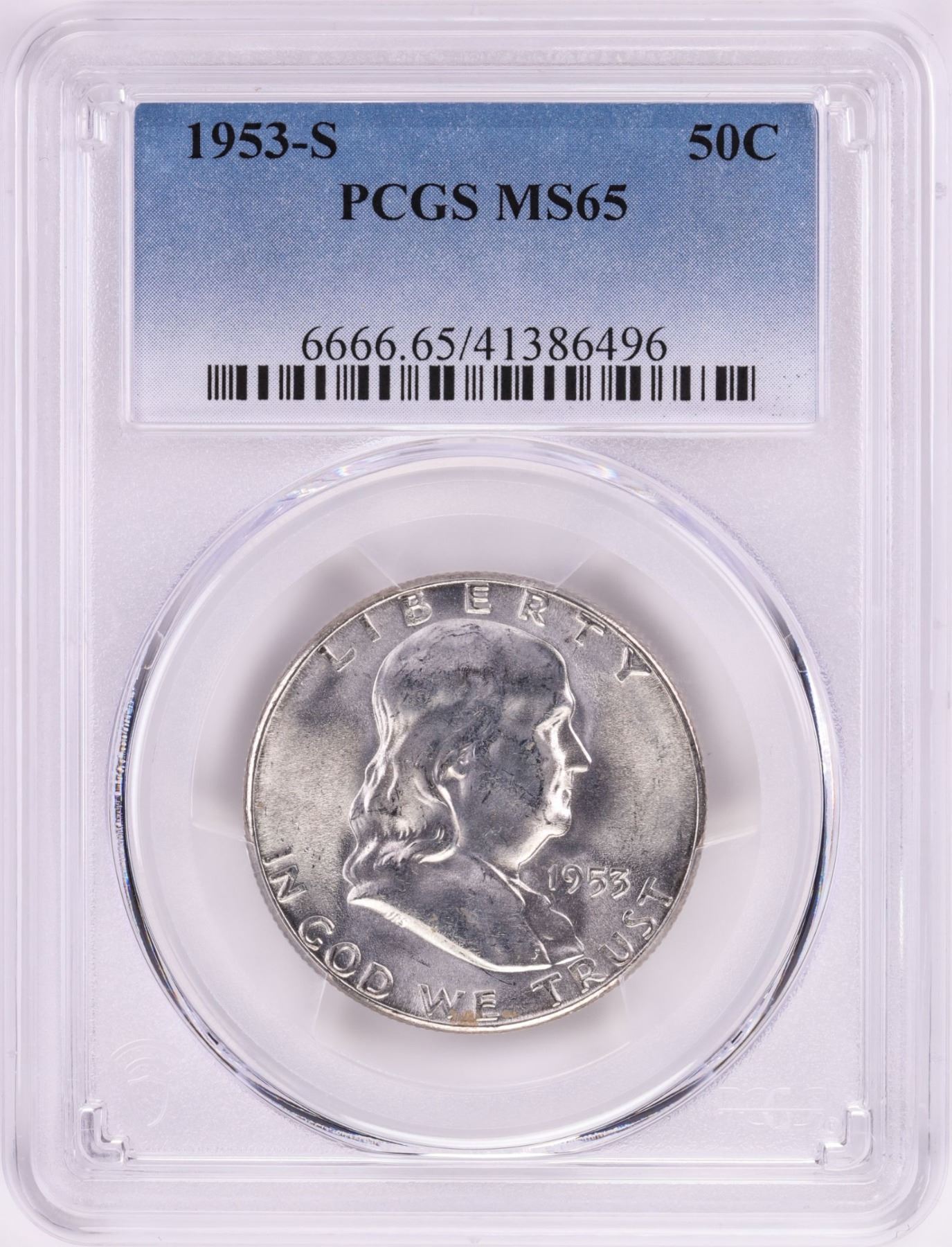 One 1953-S Franklin Half Dollar Coin PCGS MS65.