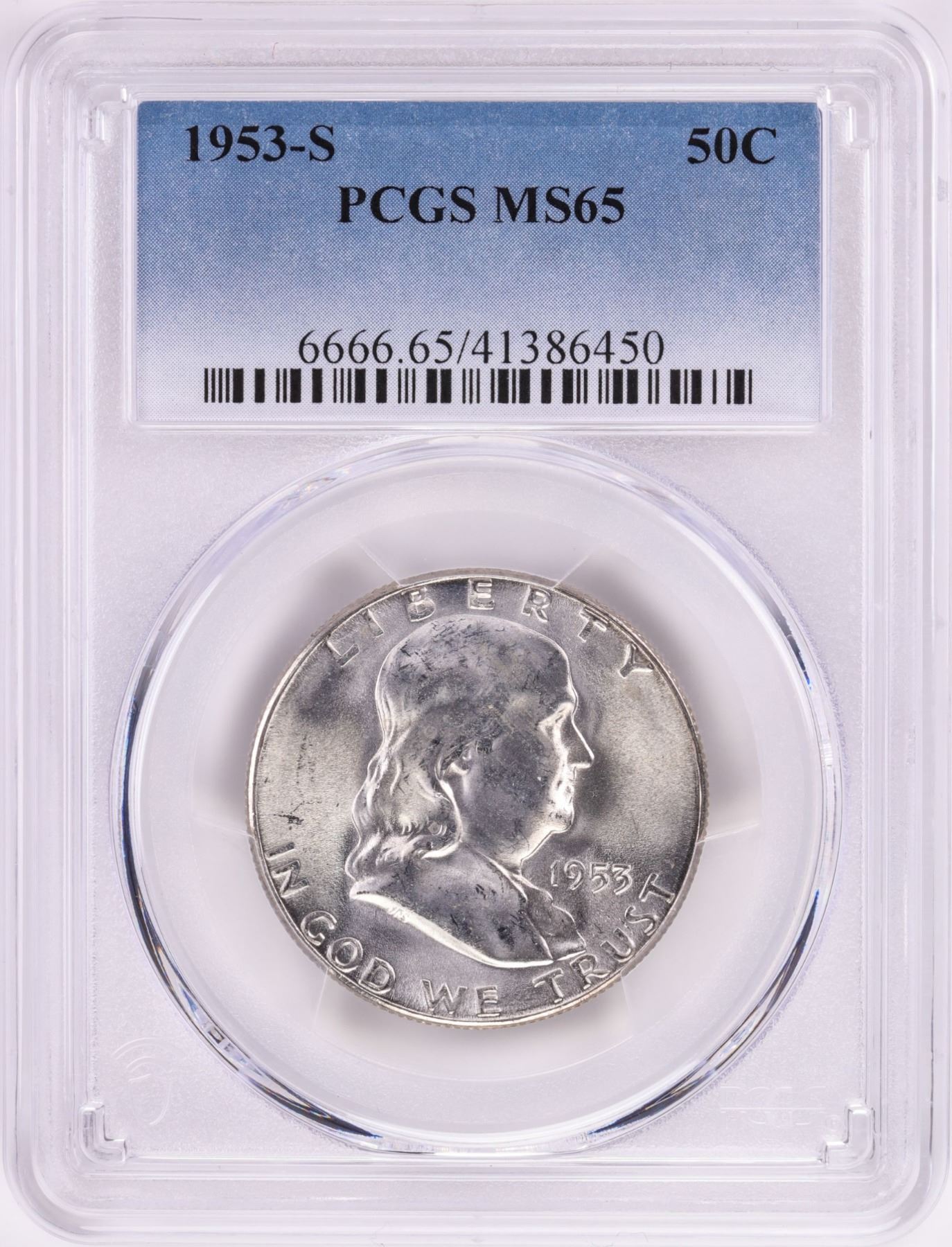 One 1953-S Franklin Half Dollar Coin PCGS MS65.