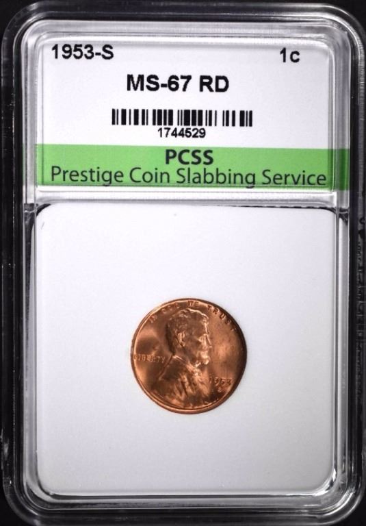 1953-S LINCOLN CENT, PCSS SUPERB GEM BU RED ESTIMATE $125 - $150.