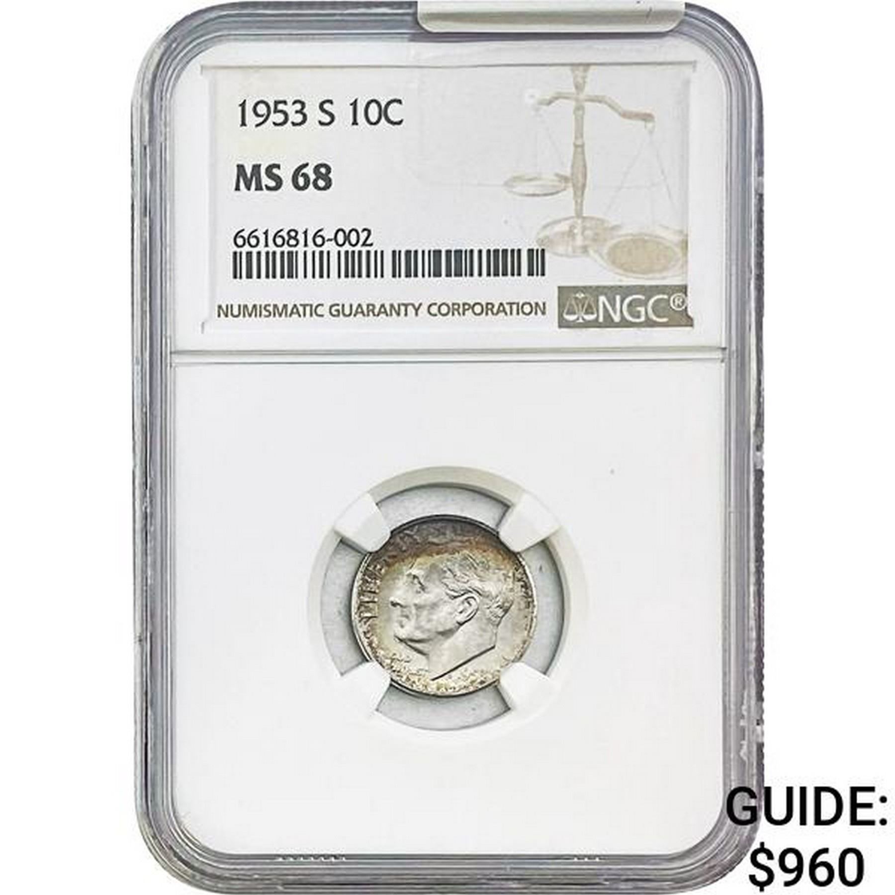 1953-S Roosevelt Dime NGC MS68