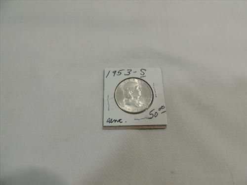1953-S UNCIRCULATED FRANKLIN HALF DOLLAR. AS SHOWN. VIEW PICTURE FOR DETAIL.