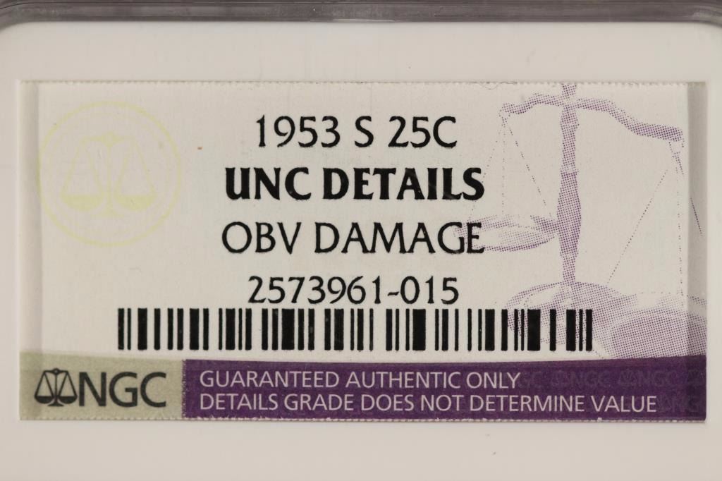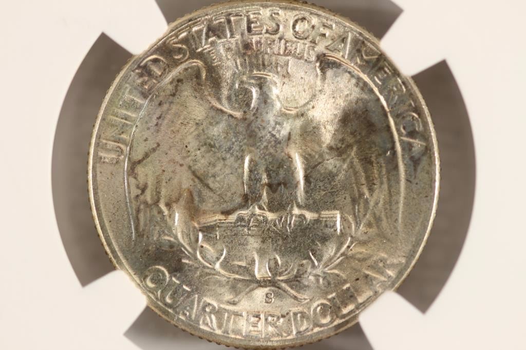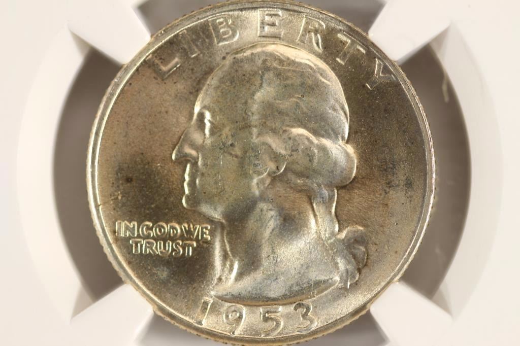1953-S WASHINGTON SILVER QUARTER NGC UNC DETAILS
