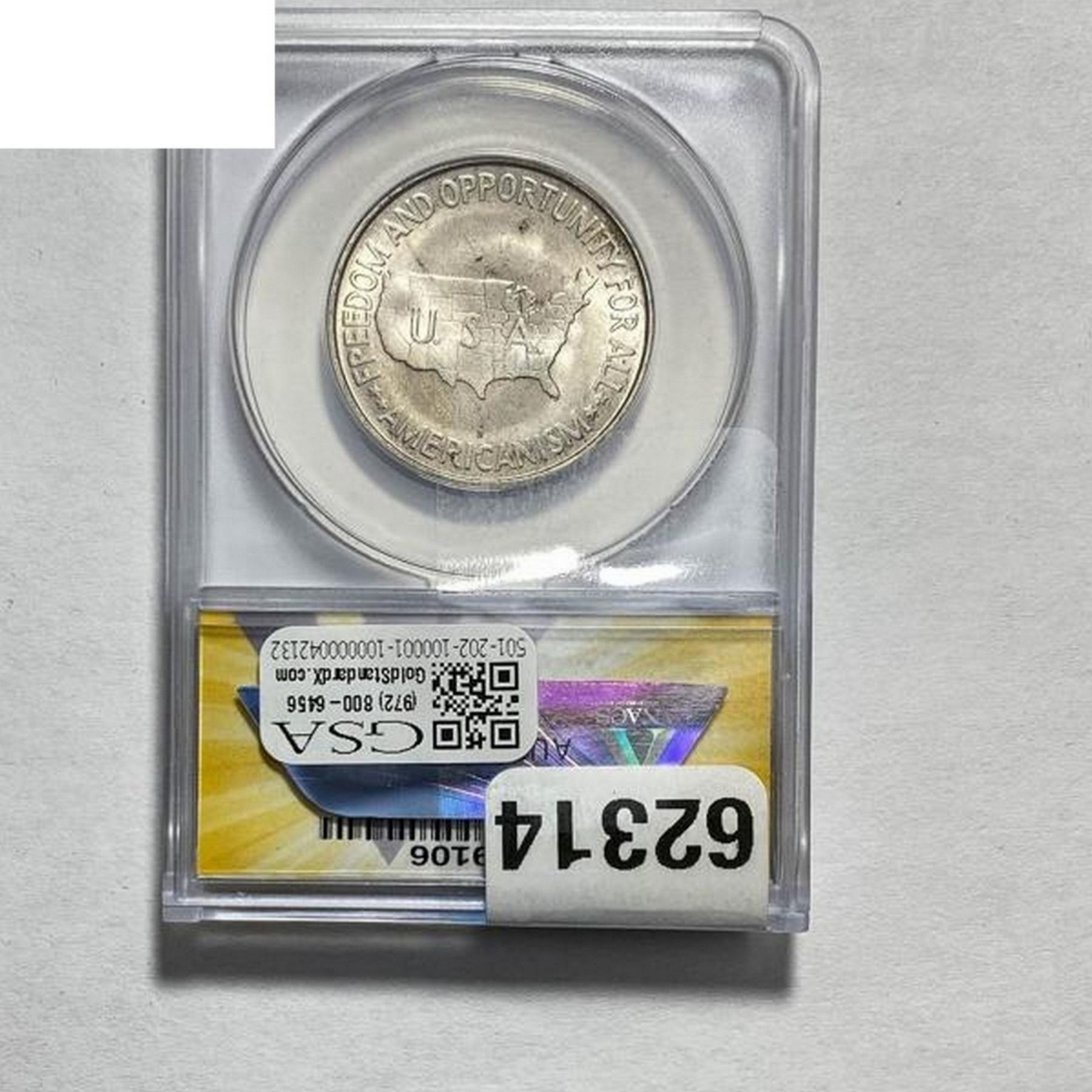 COINS AND CURRENCY LISTED IN GSA’S CATALOG AS GRADED AND ENCAPSULATED BY PCGS, NGC, ANACS, ICG, PCGS CURRENCY, PMG, PCGS BANKNOTE GRADING, CMC OR ANY OTHER THIRD-PARTY GRADING SERVICE ARE LIKEWISE SOLD “AS-IS” EXCEPT AS EXPRESSLY SET FORTH HEREIN. ALL THIRD-PARTY GRADING SERVICE GUARANTEES, INCLUDING AUTHENTICITY, ARE THE SOLE RESPONSIBILITY OF THE THIRD-PARTY GRADING SERVICE AND NOT WARRANTIES OR GUARANTEES OF GSA. BIDDERS SHOULD CONTACT THESE THIRD-PARTY GRADING SERVICES DIRECTLY WITH RESPECT TO ANY CLAIMS OR QUESTIONS THEY MAY HAVE CONCERNING THEIR GUARANTEES AND WARRANTIES. BIDDERS ACKNOWLEDGE AND AGREE THAT AUCTIONEER IS NOT BOUND BY OR LIABLE FOR ANY OPINION OR CERTIFICATION BY ANY THIRD-PARTY GRADING SERVICE. REMOVAL OF A PRODUCT FROM ITS PROTECTIVE CASING OR HOLDER OR ALTERATION OF ANY COIN HOLDER WAIVES ALL RIGHTS CONCERNING THE PRODUCT CONTAINED THEREIN.