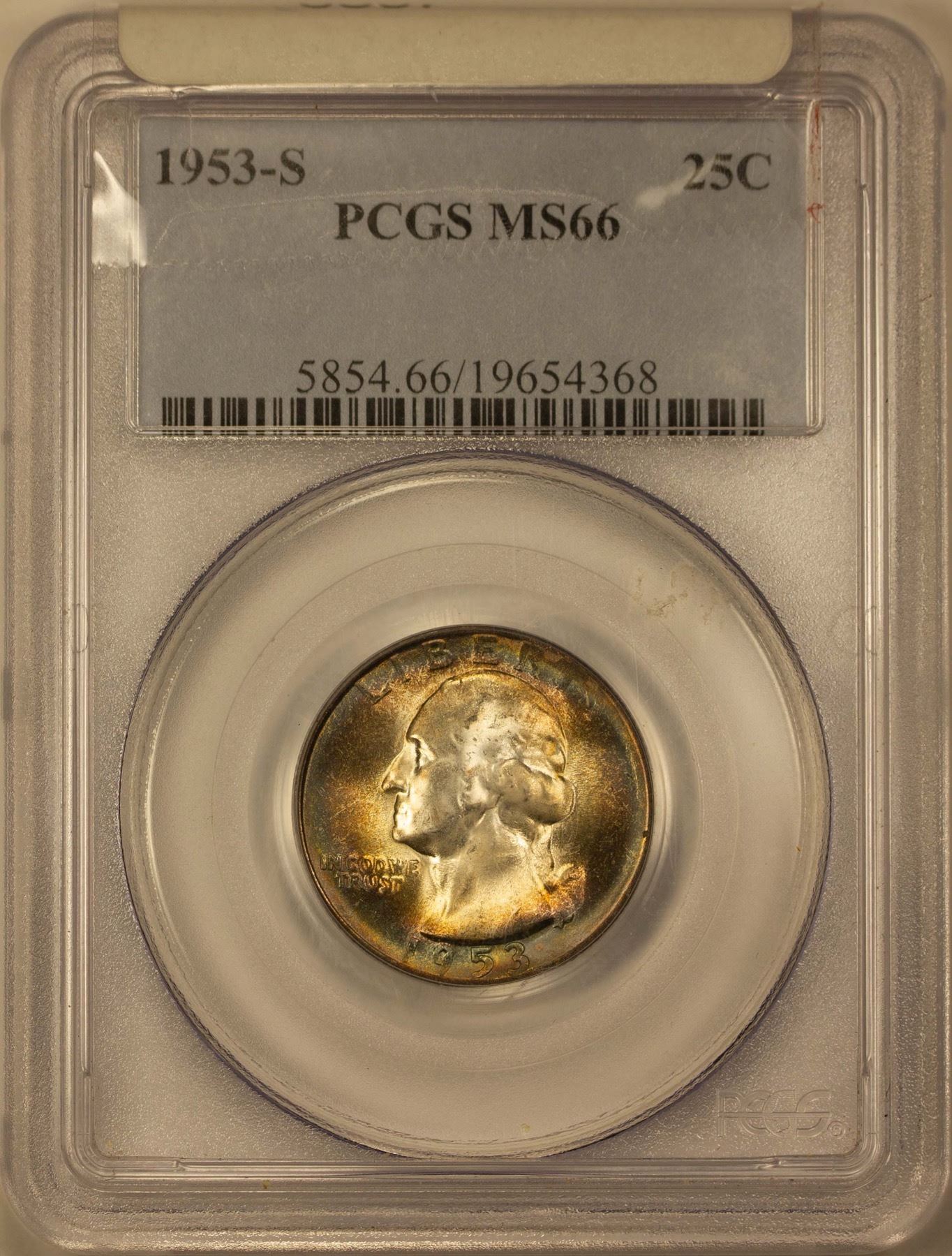 1953-S Washington Quarter 25c PCGS MS-66 (Toned)