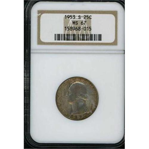 <b>1953-S Washington Quarter Dollar. NGC graded MS67.</b> Nice original gray to russet toning <b>(PCGS # 5854)</b>