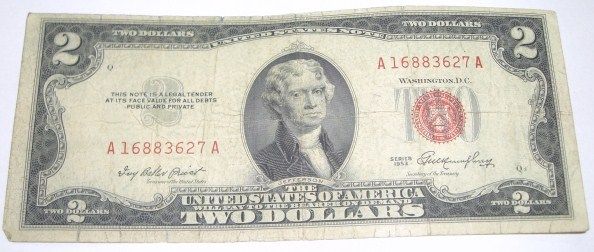 1953 SERIES $2 RED SEAL CERTIFICATE SERIAL # A16883627A *RARE VERY FINE GRADE*! ***Coin, Currency & All Items Listed in this auction - Grades, Conditions and Values are not Safe Deposit Coins LLC Responsibilty. Grades, Condition and Values are determined by Consigner(s) & Buyers ONLY