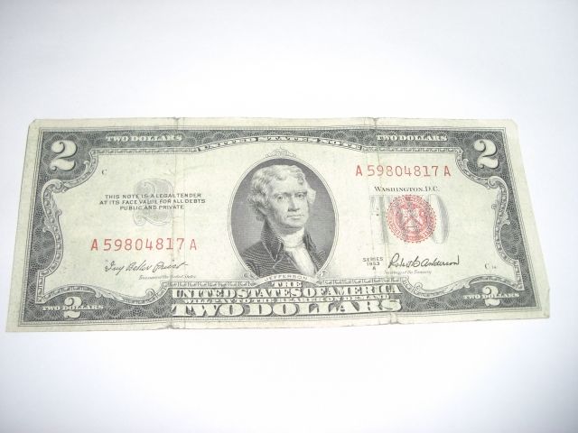 1953 SERIES A $2 RED SEAL NOTE *SERIAL #A59804817A*!! ***Coin, Currency & All Items Listed in this auction - Grades, Conditions and Values are not Safe Deposit Coins LLC Responsibilty. Grades, Condition and Values are determined by Consigner(s) & Buyers ONLY***