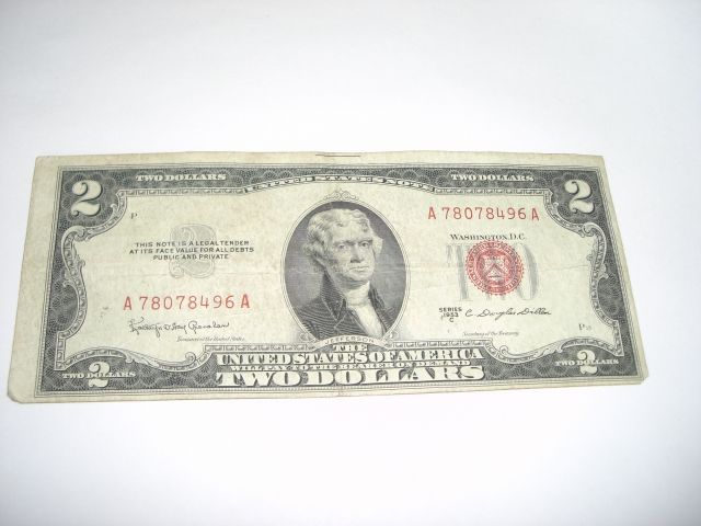 1953 SERIES C $2 RED SEAL NOTE *SERIAL #A78078496A*!! ***Coin, Currency & All Items Listed in this auction - Grades, Conditions and Values are not Safe Deposit Coins LLC Responsibilty. Grades, Condition and Values are determined by Consigner(s) & Buyers ONLY***