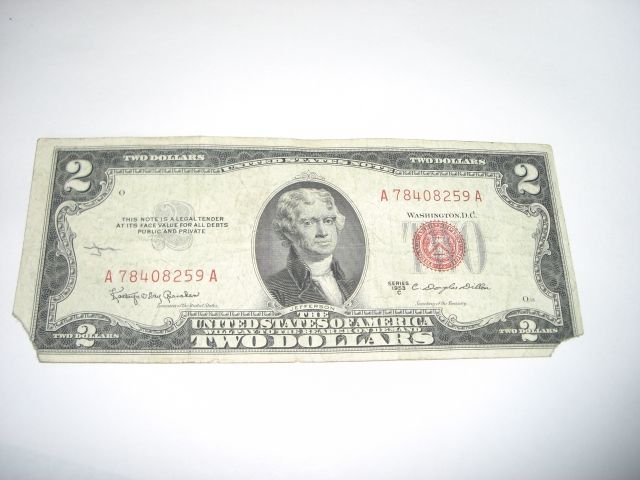 1953 SERIES C $2 RED SEAL NOTE *SERIAL #A78408259A*!! ***Coin, Currency & All Items Listed in this auction - Grades, Conditions and Values are not Safe Deposit Coins LLC Responsibilty. Grades, Condition and Values are determined by Consigner(s) & Buyers ONLY***