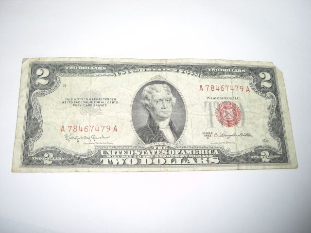 1953 SERIES C $2 RED SEAL NOTE *SERIAL #A78467479A*!! ***Coin, Currency & All Items Listed in this auction - Grades, Conditions and Values are not Safe Deposit Coins LLC Responsibilty. Grades, Condition and Values are determined by Consigner(s) & Buyers ONLY***