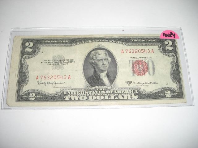 1953 SERIES C RARE *RED SEAL-HIGH GRADE* $2.00 SERIAL # A76320543A. DOLLAR CAME OUT OF SAFE!! ***Coin, Currency & All Items Listed in this auction - Grades, Conditions and Values are not Safe Deposit Coins LLC Responsibilty. Grades, Condition and Values are determined by Consigner(s)