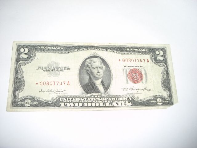 1953 SERIES STAR NOTE $2 RED SEAL STAR NOTE *SERIAL # *00801747A*!! ***Coin, Currency & All Items Listed in this auction - Grades, Conditions and Values are not Safe Deposit Coins LLC Responsibilty. Grades, Condition and Values are determined by Consigner(s) & Buyers ONLY***