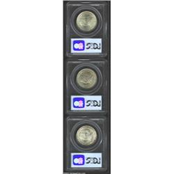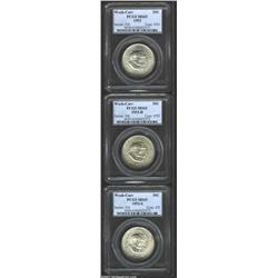 1953 SET Washington-Carver PDS Set MS65 PCGS. The P-mint coin is lustrous and lightly toned with a reasonable strike and a carefully preserved obverse. The D-mint Gem is sharply struck and well preserved, the mintmark appears to be repunched east. The S-mint representative has variegated green-gold peripheral patina and a typical strike, the cheek has a small contact mark. 3 coins Important notice: We expect to be auctioning lots at the rate of 200-250 per hour. Sometimes eBay Premier live bid software cannot keep up with that pace, so we strongly recommend that you place a realistic proxy bid now as insurance to avoid disappointment. Also please note that all Heritage/CAA lots purchased through eBay Premier carry a 20% Buyer's Premium. Please make sure you read the Terms and Conditions.