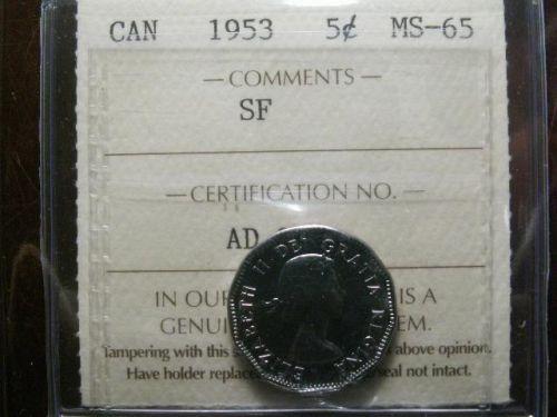 1953 SF 5¢ ICCS MS65. Fully struck with full luster. A true "Gem"