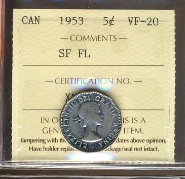 1953 SF, Far MULE 5¢ ICCS VF20, problem free.