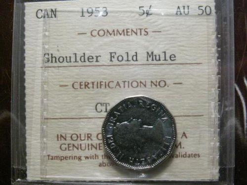 1953 SF "MULE" 5¢ ICCS MSAU50. Well struck with some lustre. Scarce in this condition.