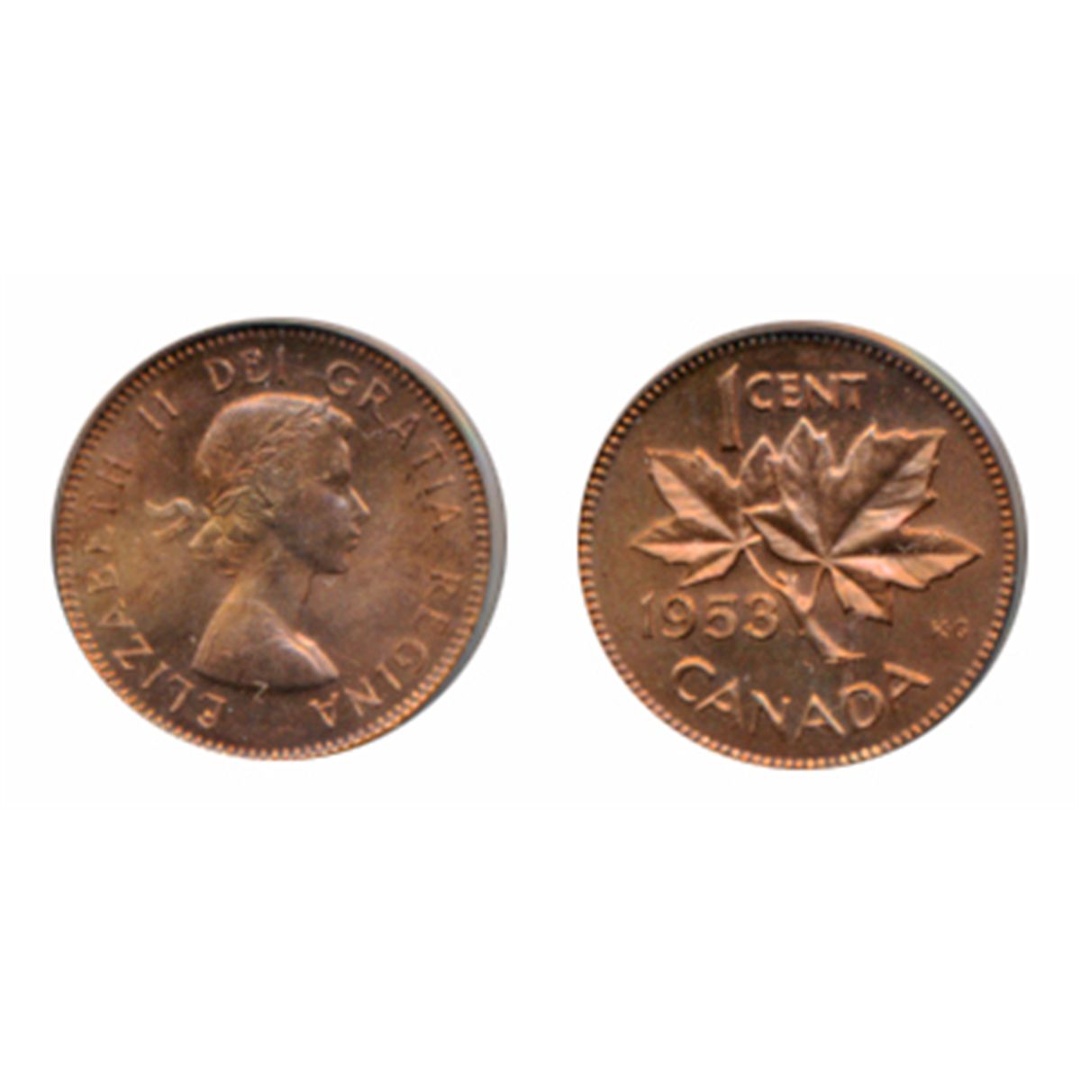 1953. SF. PCGS graded Mint State-65. Red. 90% red luster.