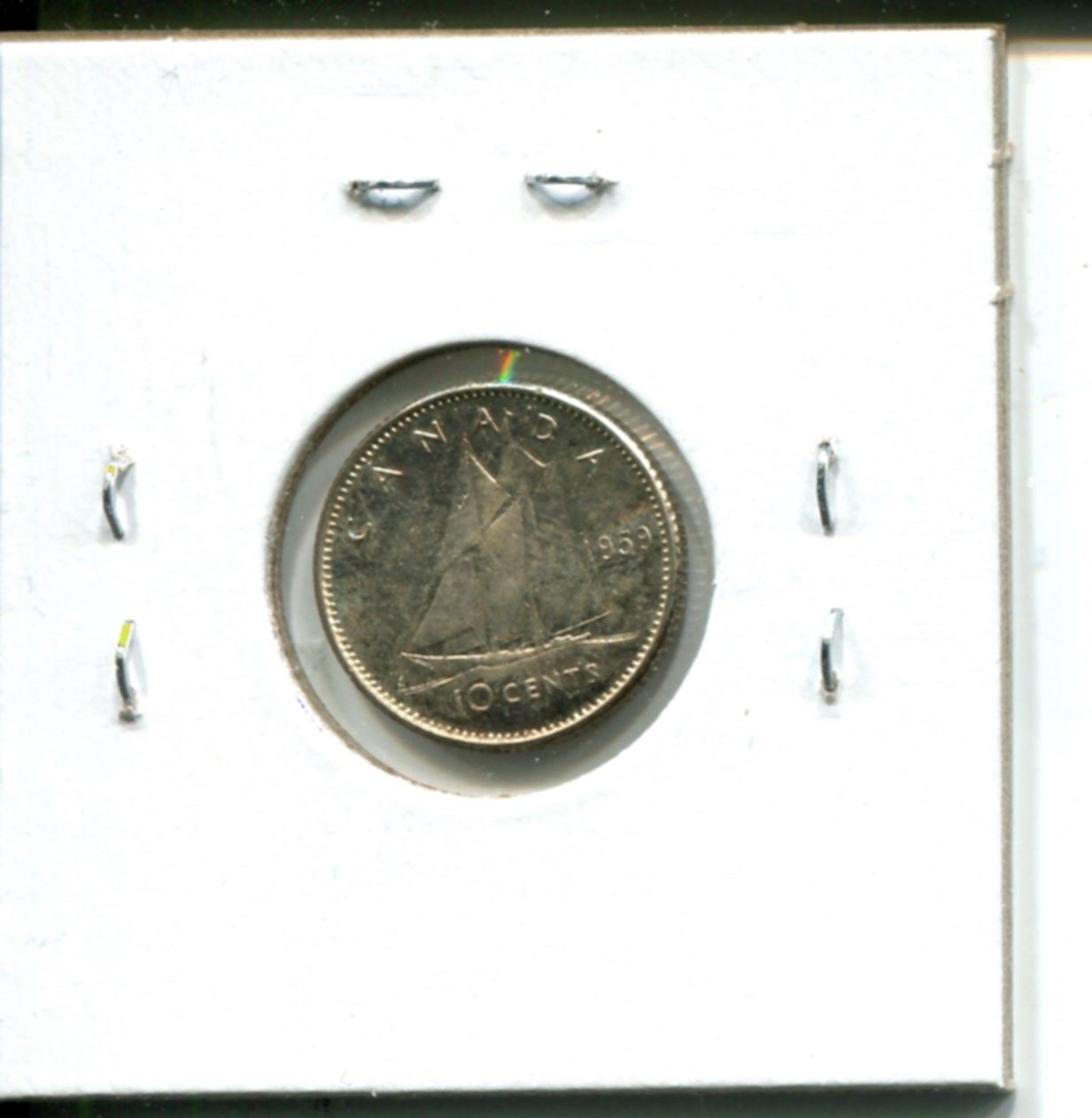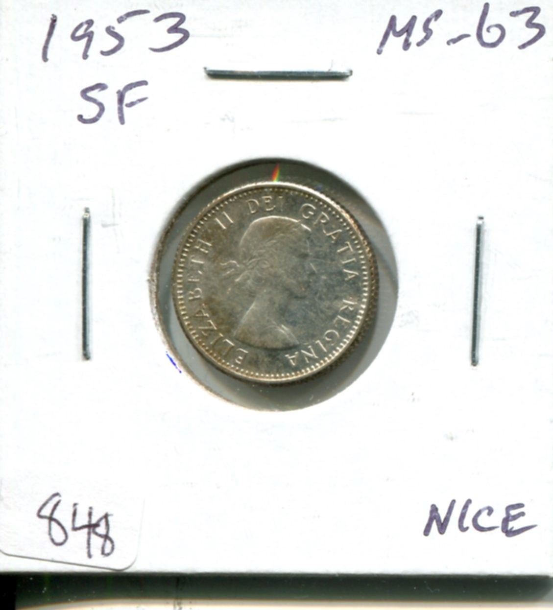 1953 Shoulder Fold Canadian Silver 10 Cents. The first issue of Queen Elizabeth. MS-63. Nice.