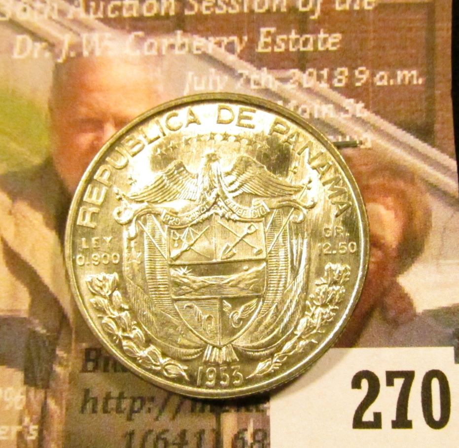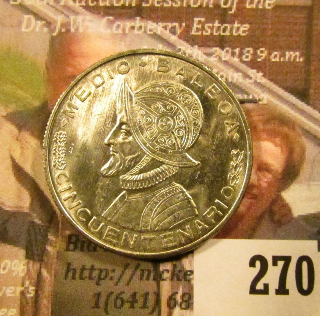 1953 Silver Half Balboa from Panama, Brilliant Uncirculated.