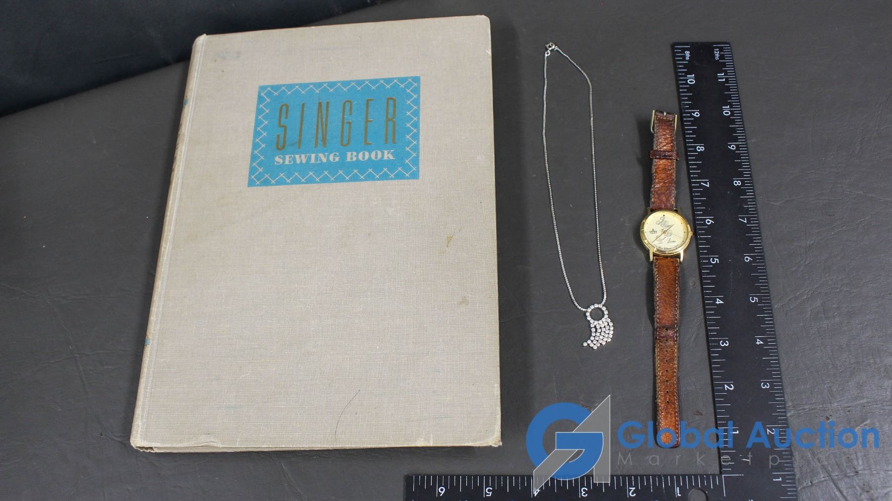 1953 Singer Sewing Book, Mickey Mouse Watch & Necklace
