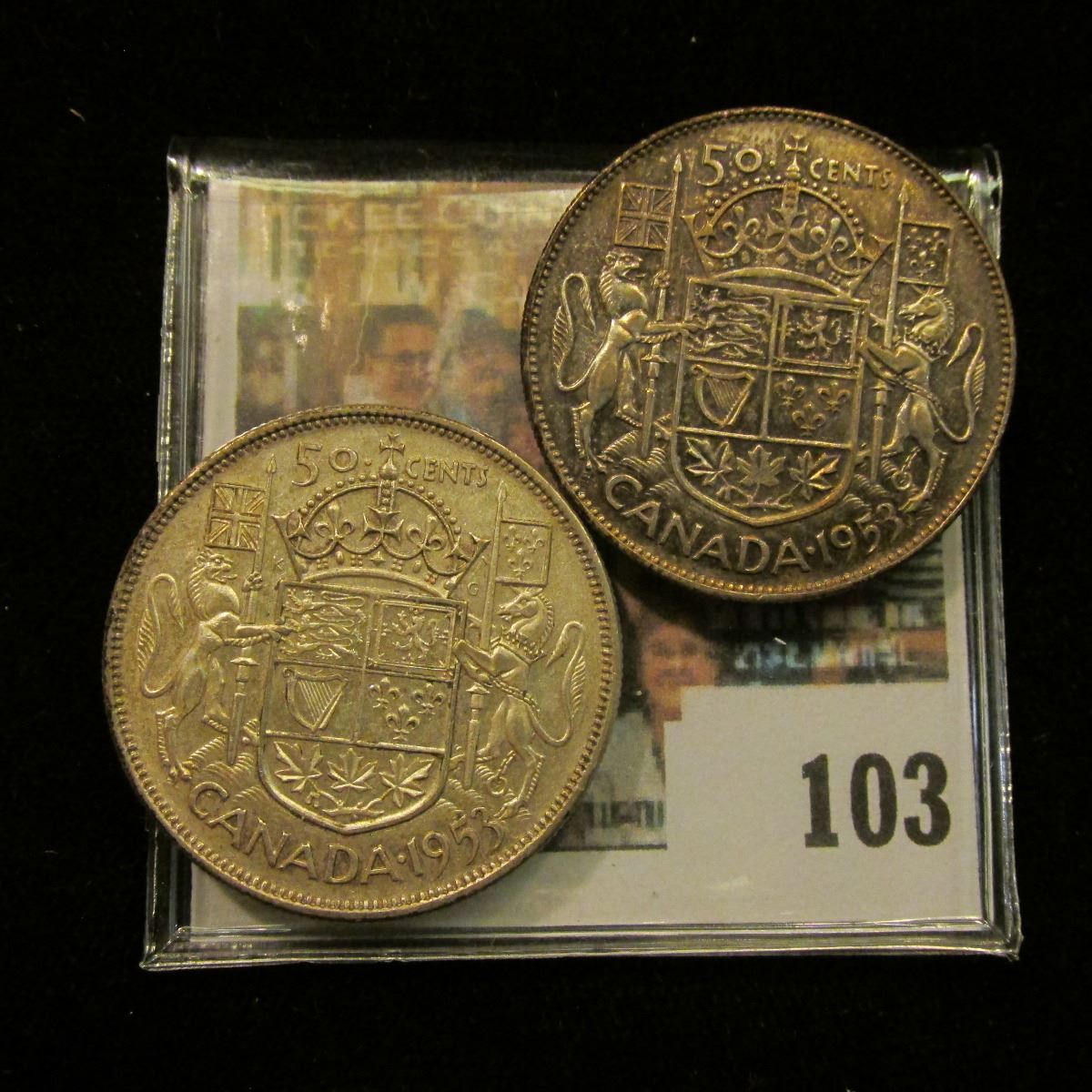 1953 Small & Large Date Canada Silver Half Dollars, both EF.