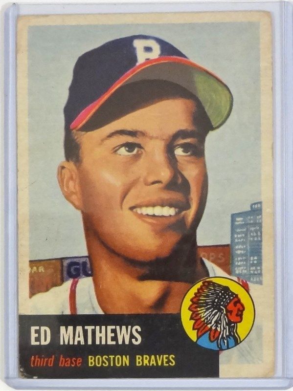 1953 TOPPS #37 EDDIE MATHEWS VG, LIGHT SURFACE SCRATCHING