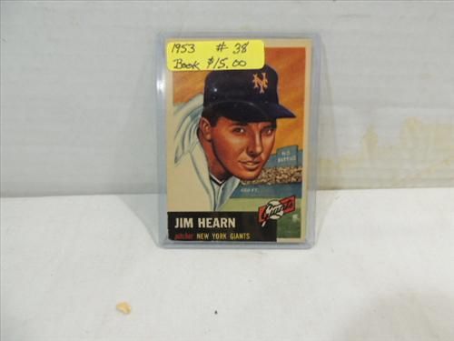 1953 TOPPS #38 BASEBALL PLAYER CARD JIM HEARN. AS SHOWN. VIEW PICTURE FOR DETAIL.
