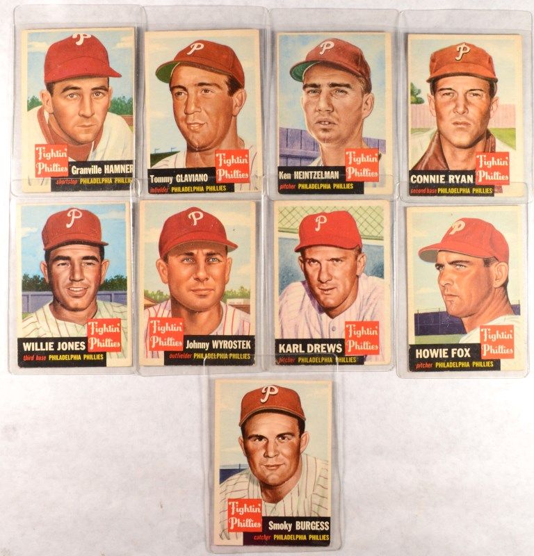 1953 TOPPS BASEBALL PHILLIES TEAM LOT (9 DIFFERENT) MOSTLY EX-EX+, 1-VG