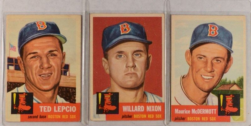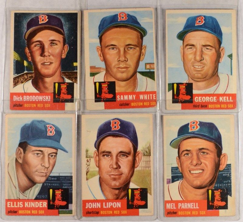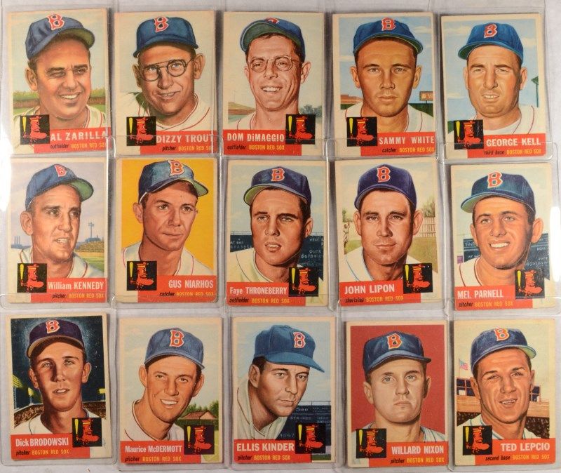 1953 TOPPS BASEBALL RED SOX TEAM LOT (15 DIFFERENT) MOSTLY EX-EX+, 2-VG's