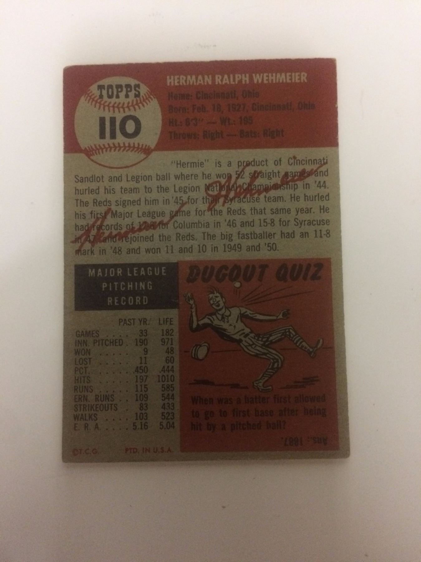 1953 Topps Cincinnati Reds Baseball Card #110 Herman Wehmeier
