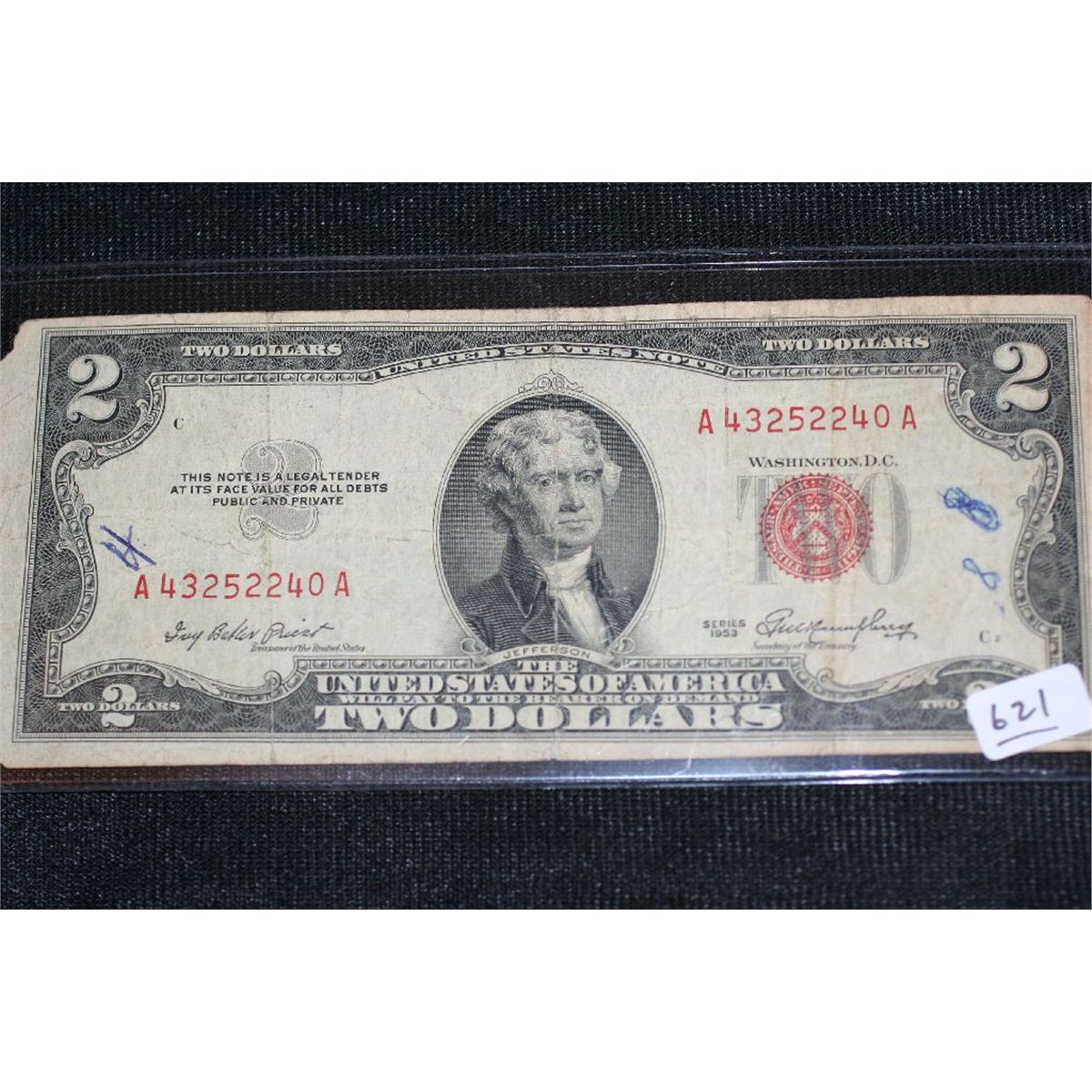 1953 Two Dollar Federal Reserve Note, Red Seal #A43252240A