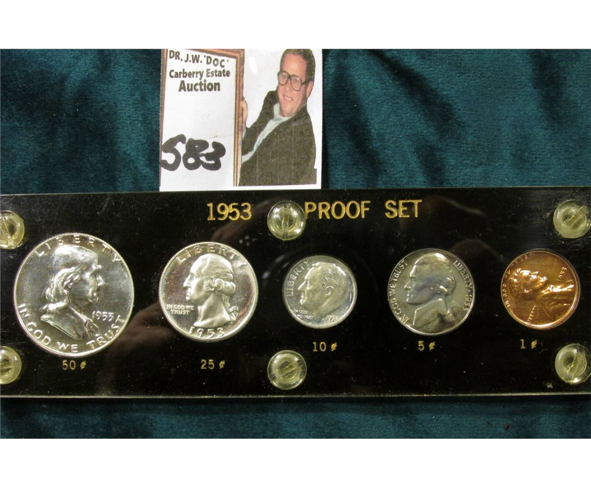 1953 U.S. Proof Set Cent to Half-dollar in black Capital holder with gold lettering.