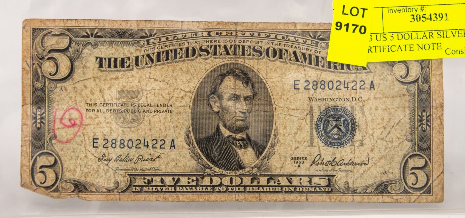 1953 US 5 DOLLAR SILVER CERTIFICATE NOTE