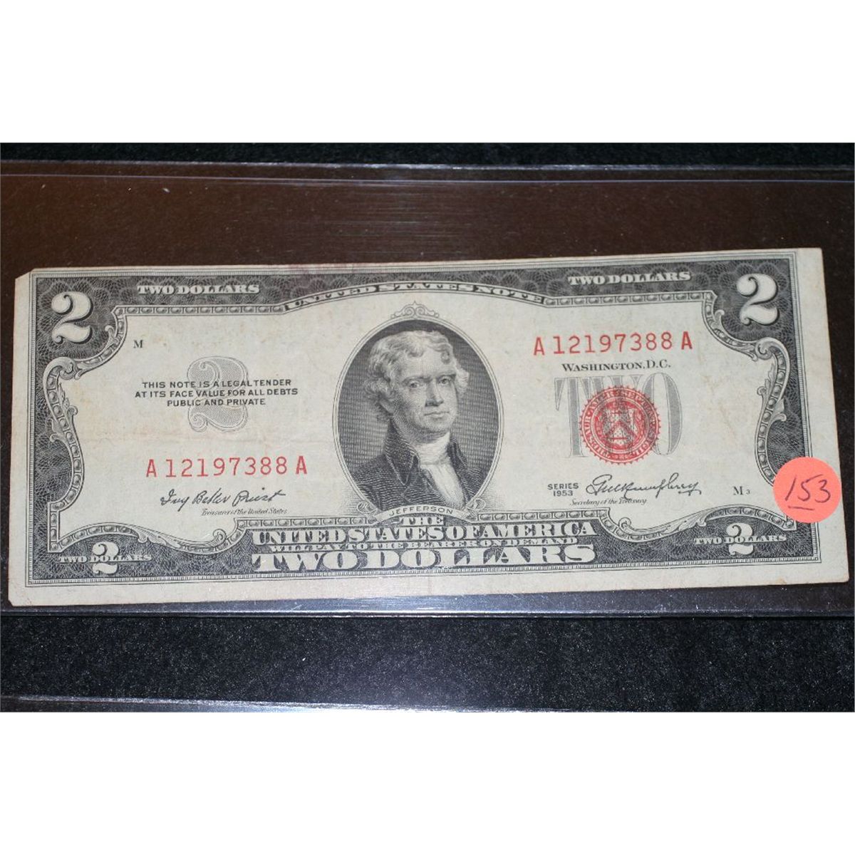 1953 US Note $2, Red Seal, #A12197388A