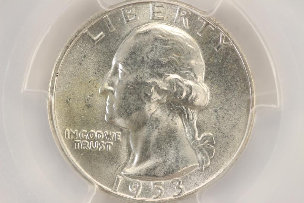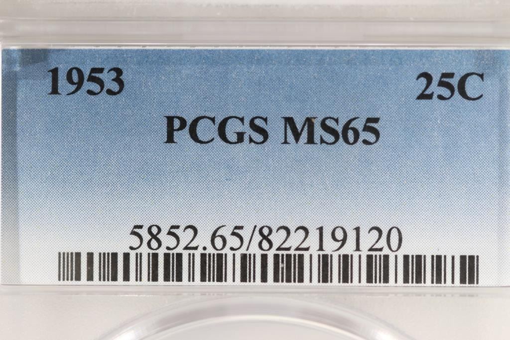 1953 WASHINGTON SILVER QUARTER PCGS MS65
