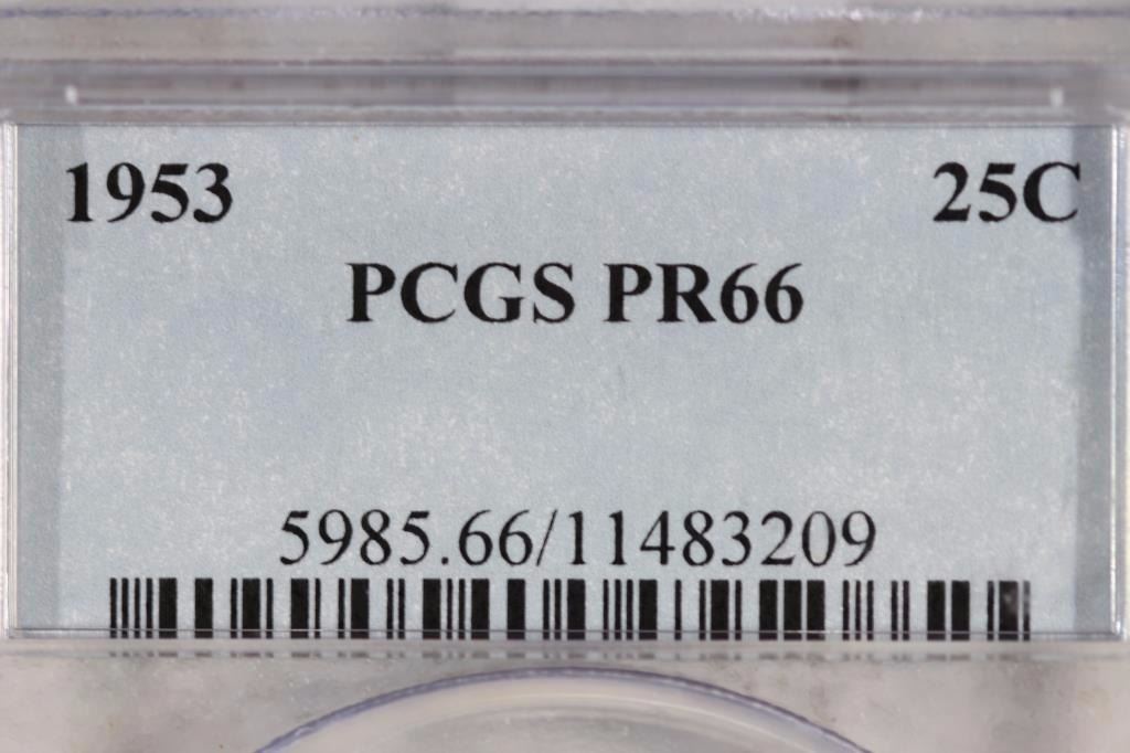 1953 WASHINGTON SILVER QUARTER PCGS PR66