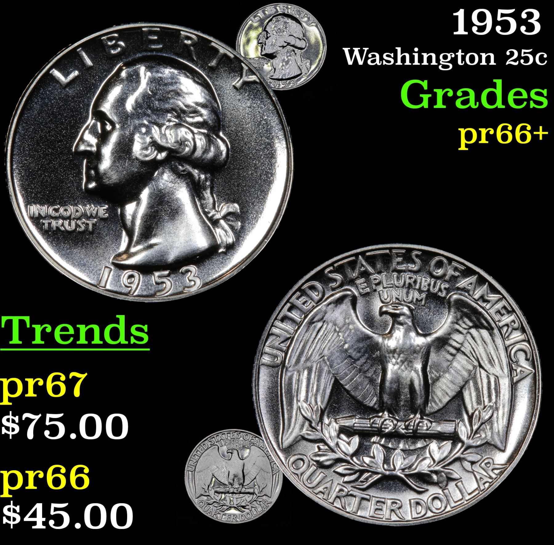1953 Washington Quarter 25c Grades GEM++ Proof.