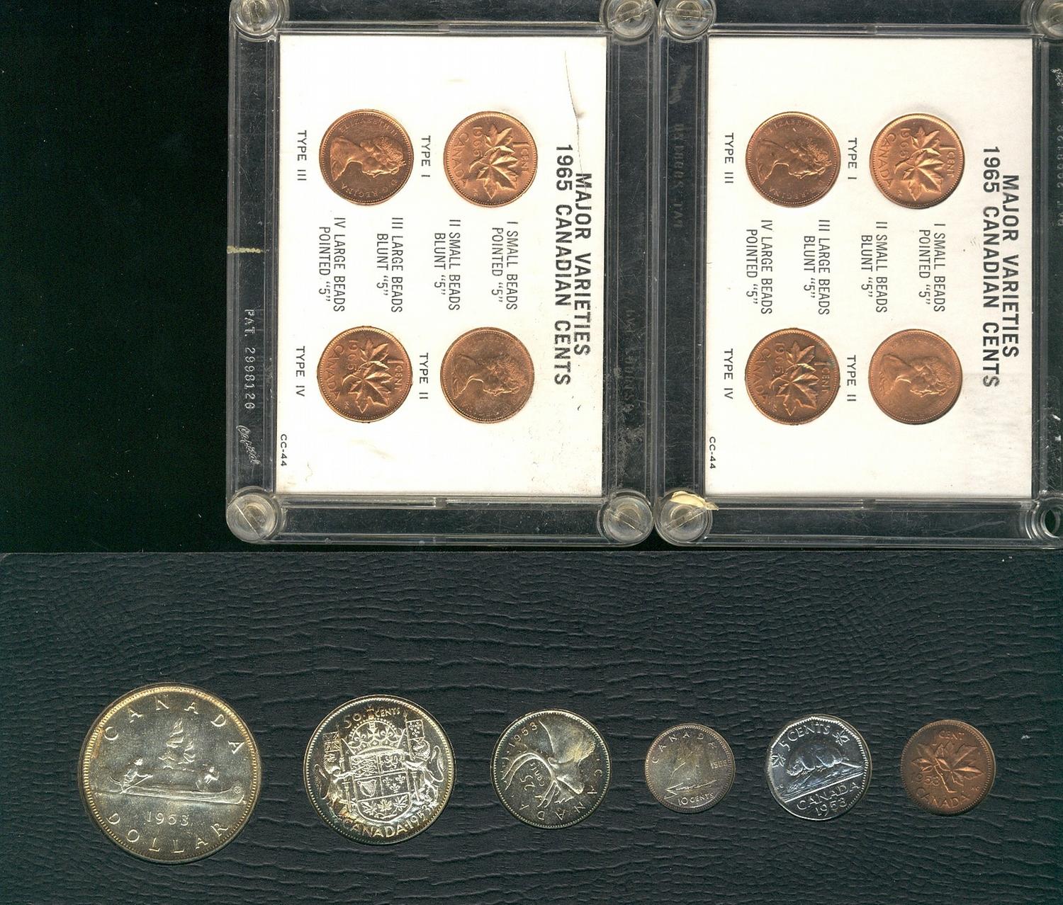 1953 Year Set, 1965 Varieties Cent set (4 coins) x 2 sets and 1956 Silver Dollar AU-UNC. Should be viewed.