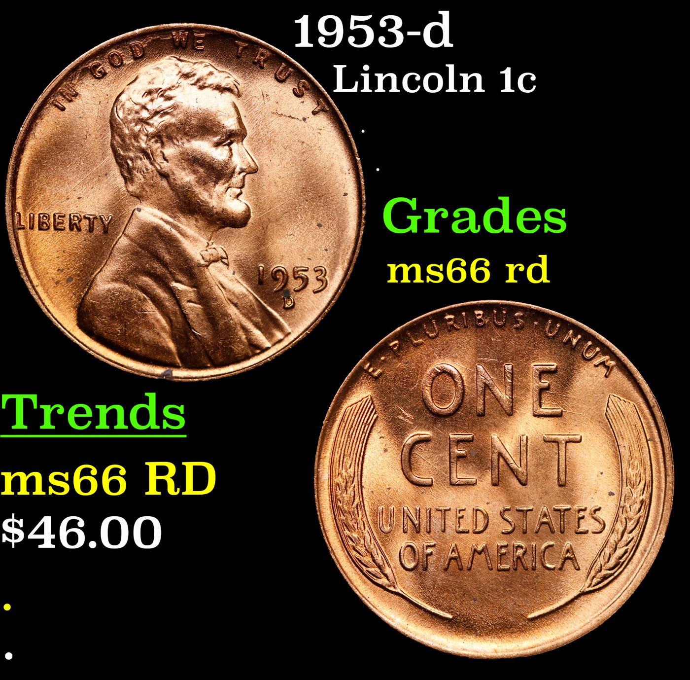 1953-d Lincoln Cent 1c Grades GEM+ Unc RD.