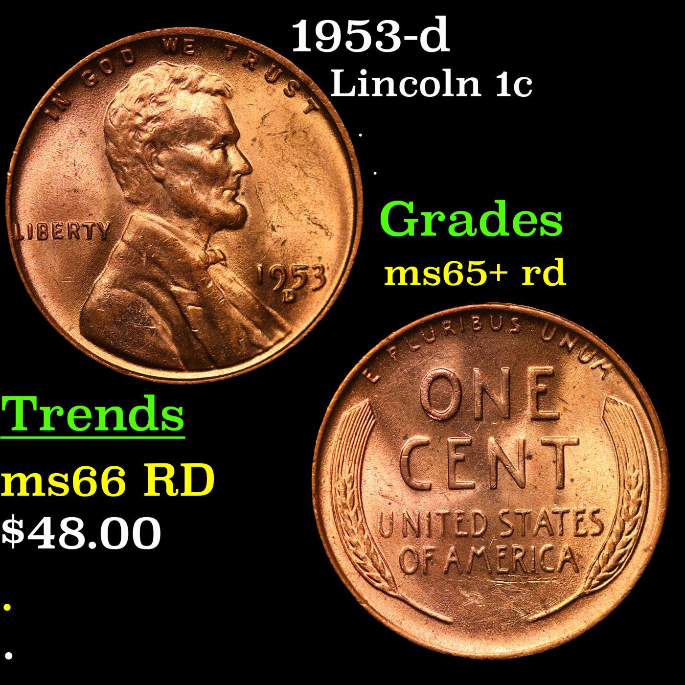 1953-d Lincoln Cent 1c Grades Gem+ Unc RD.