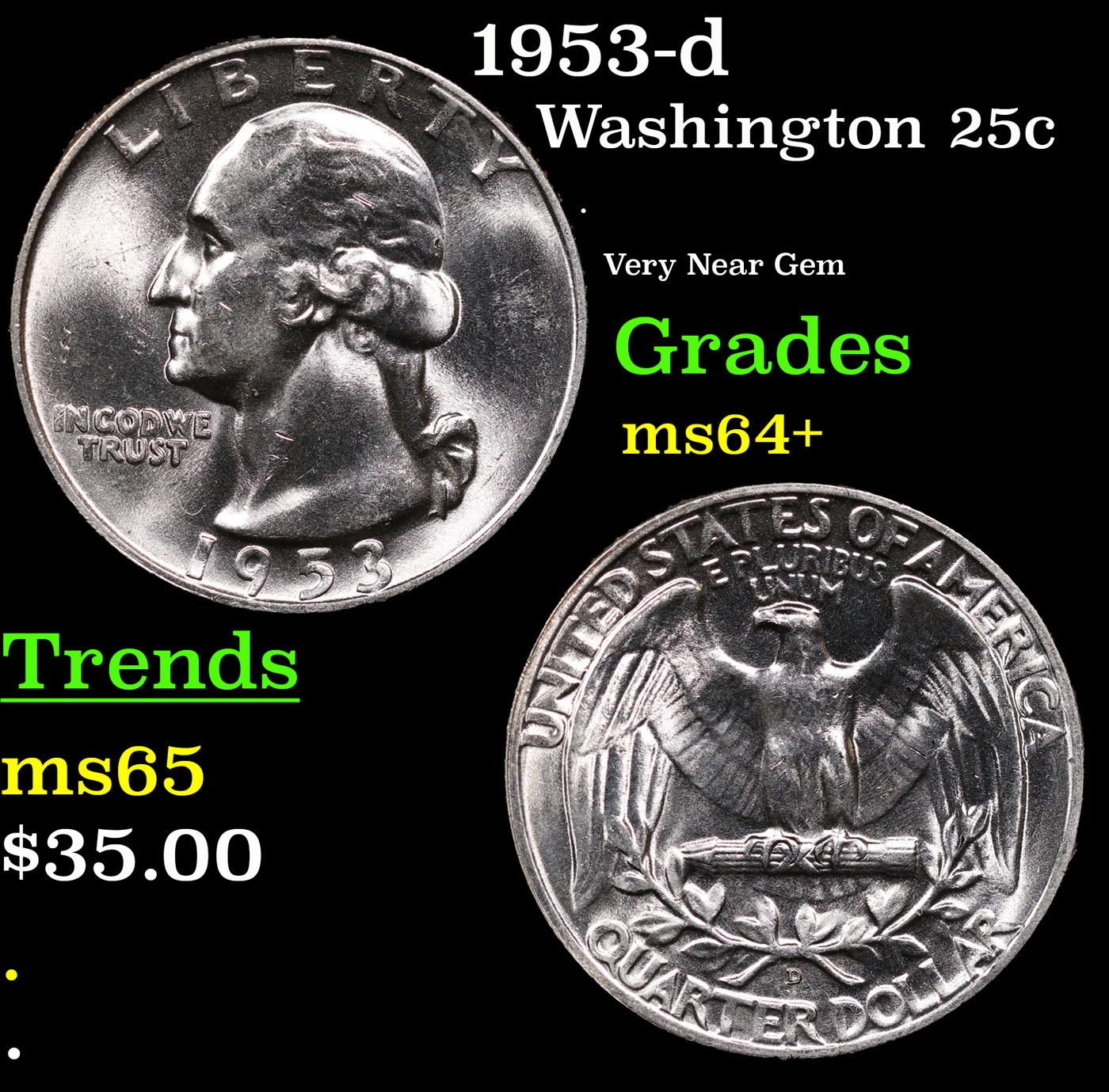 1953-d Washington Quarter 25c Grades Choice+ Unc.