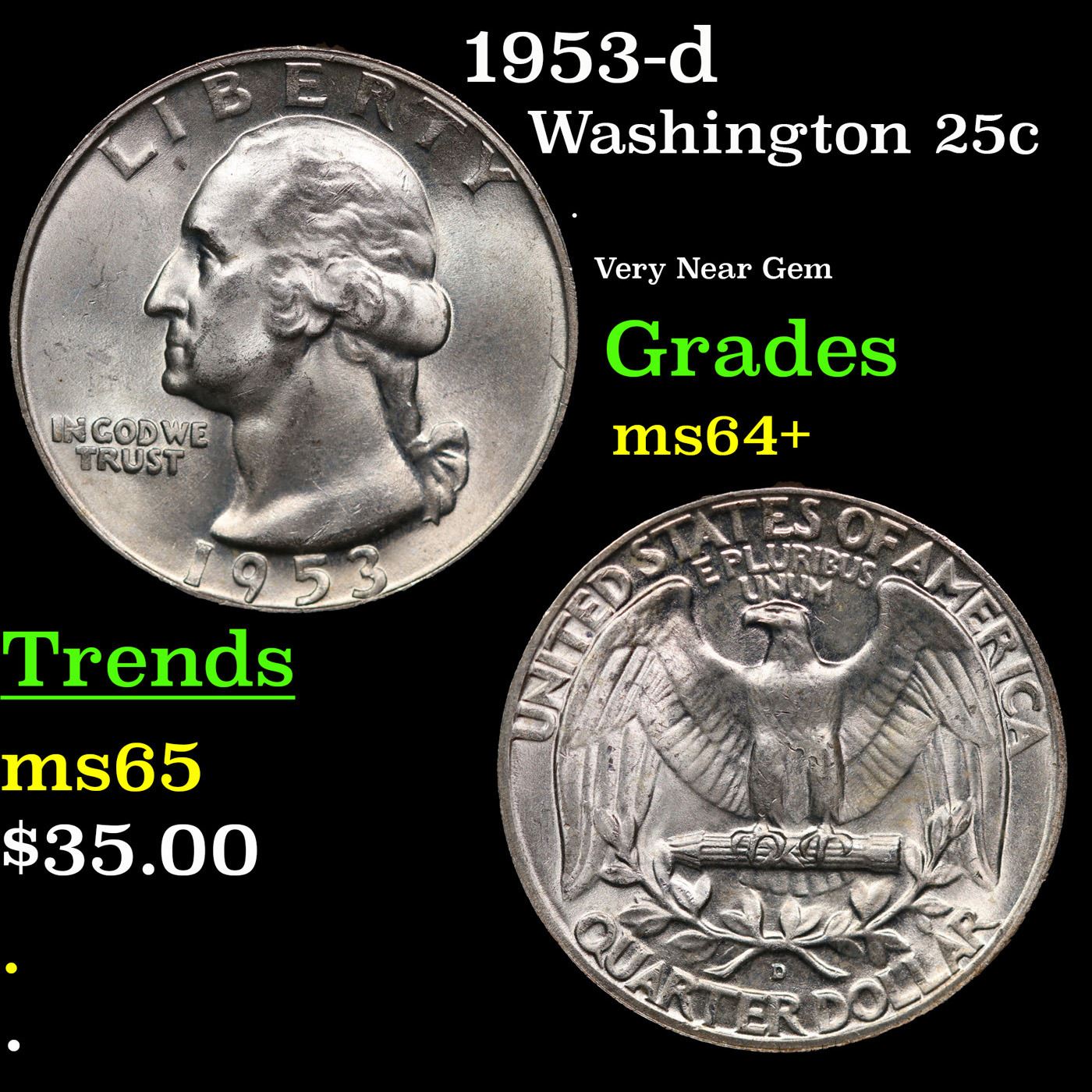 1953-d Washington Quarter 25c Grades Choice+ Unc.