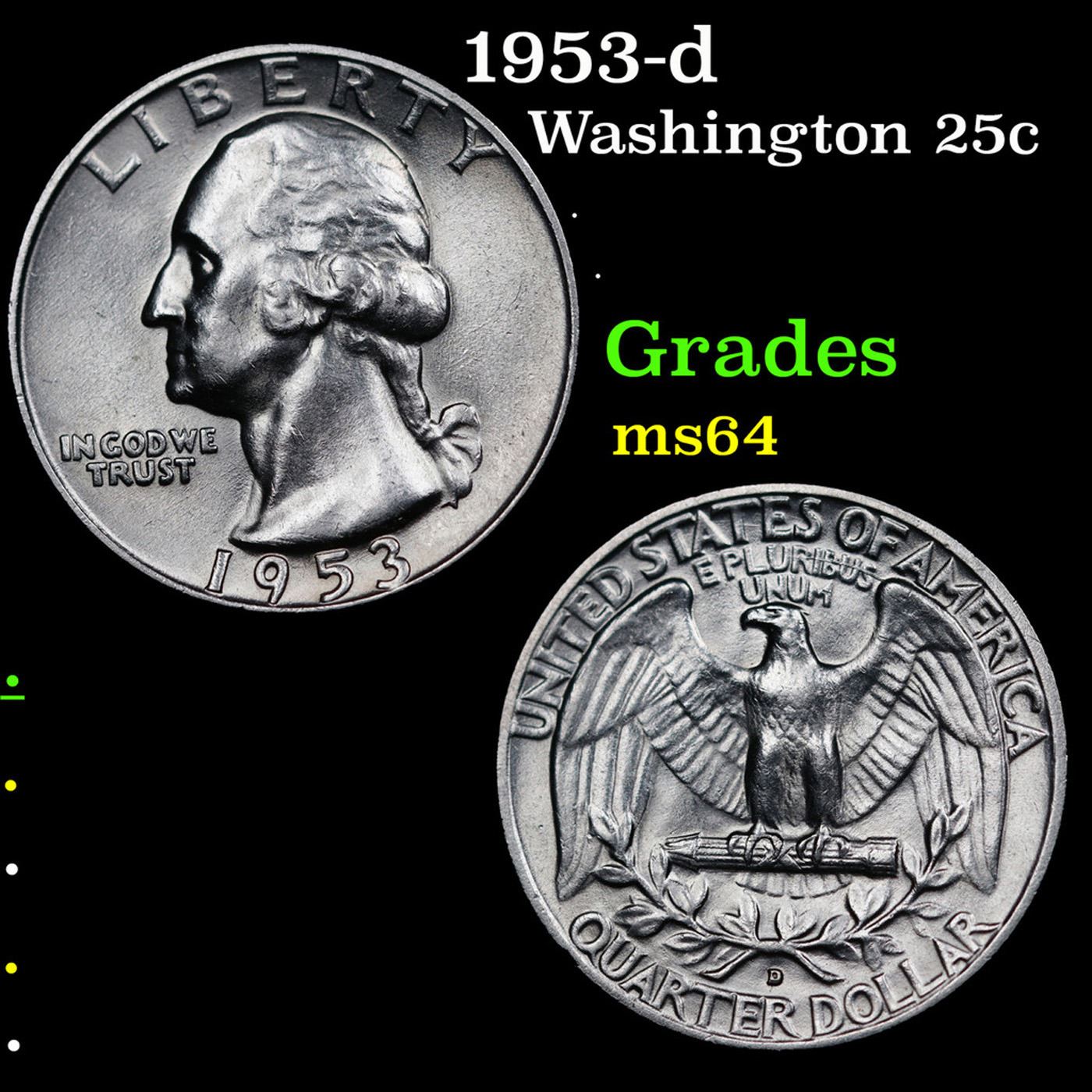 1953-d Washington Quarter 25c Grades Choice Unc.