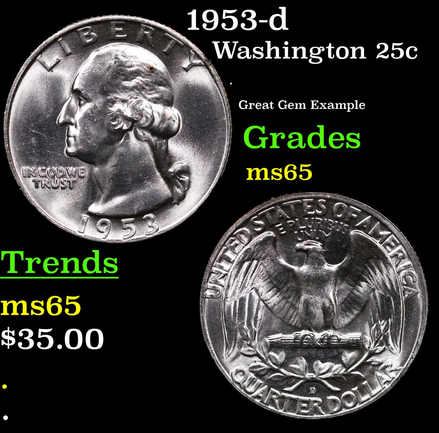 1953-d Washington Quarter 25c Grades GEM Unc.