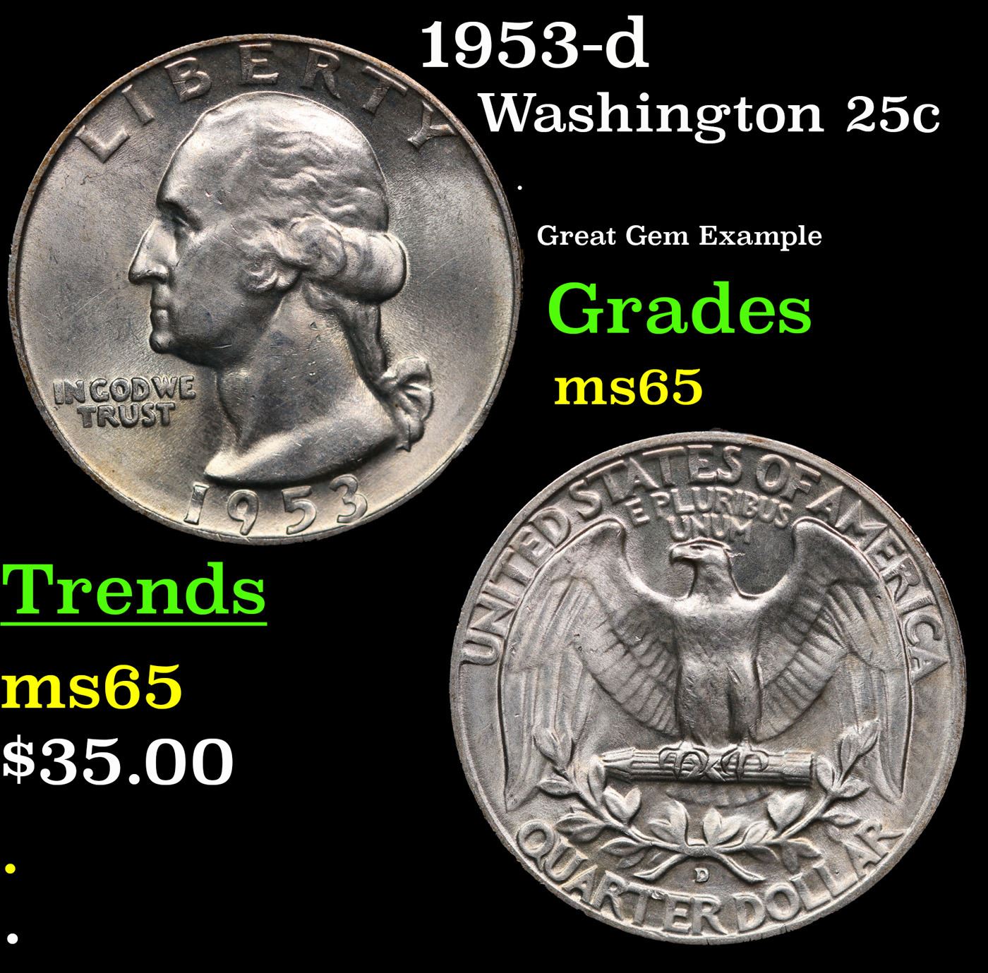 1953-d Washington Quarter 25c Grades GEM Unc.