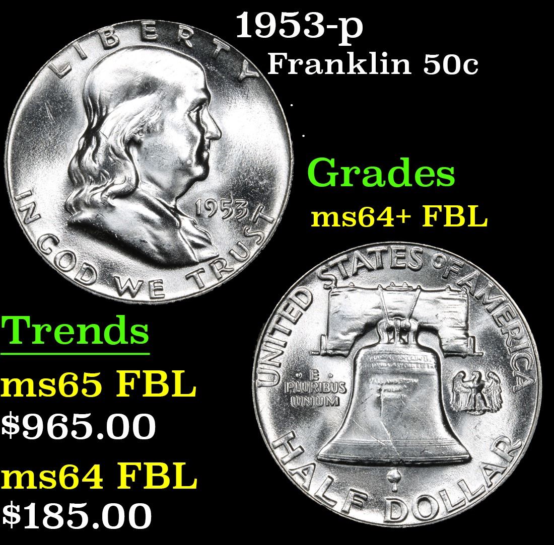 1953-p Franklin Half Dollar 50c Grades Choice Unc+ FBL.
